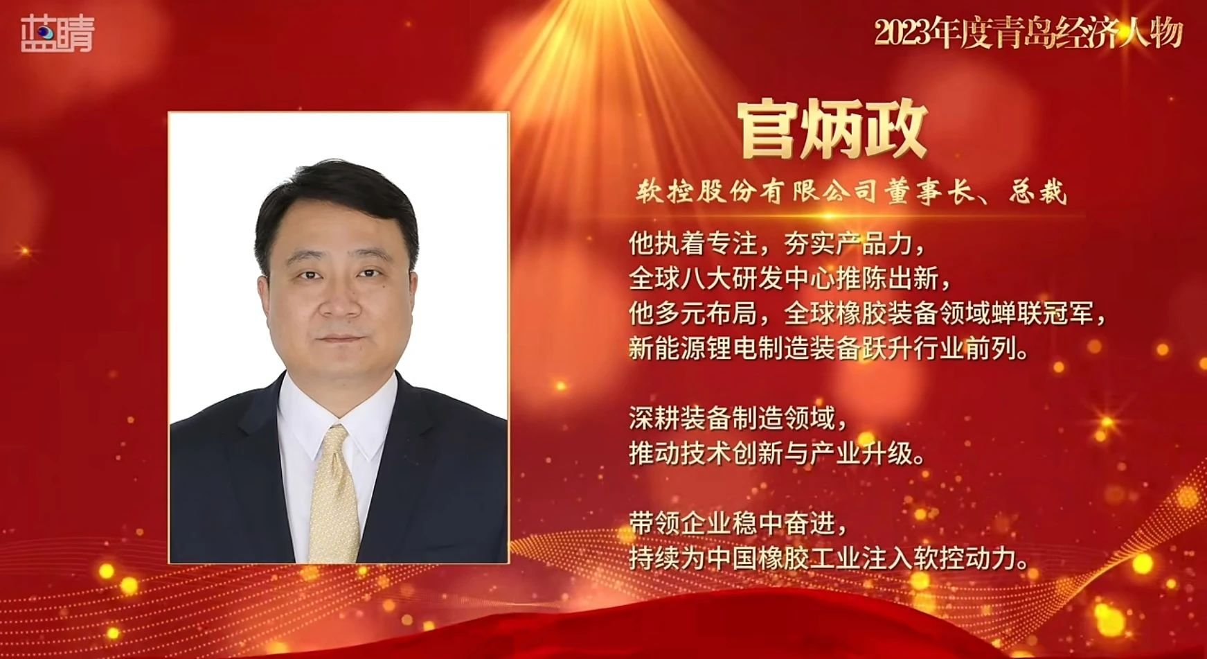 组委会在对官炳政的评价中写道:他执着专注,持续夯实产品力,全球八大研发中心推陈出新;他面向客户,不断提升营销力,本土化全方位提供贴心服务;他情系员工,深入锻造团队力,把员工的私事当成公司最大的事;他多元布局,全球橡胶装备领域蝉联冠军,新能源锂电制造装备跃升行业前列,企业可持续发展赢得金牌。