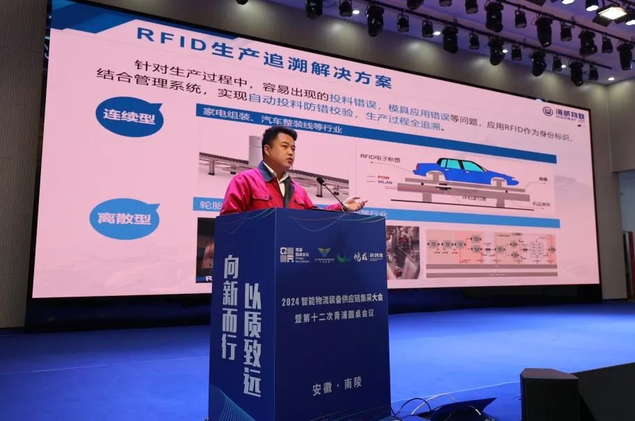 海威物联总经理助理张东辉在主题演讲中详细介绍了快递行业如何通过RFID技术的应用显著提升生产效率,并描绘了生产仓储行业RFID技术的发展蓝图;同时分享了边缘物联技术在物流和制造行业的赋能解决方案及成功案例,为行业同仁提供了实践参考。