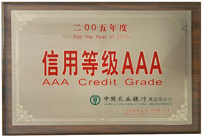 近日,我公司被中国农业银行青岛市分行评为信用等级AAA企业。