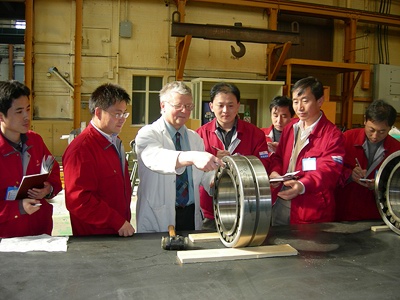 本次培训主要涉及到密炼机的工作原理、主要零部件的加工工艺、质量检测方法、部件和整机的组装工序等各个方面。在深入了解设计原理、加工等环节原理的同时,培训人员还深入到加工和组装车间进行了直观的现场学习。