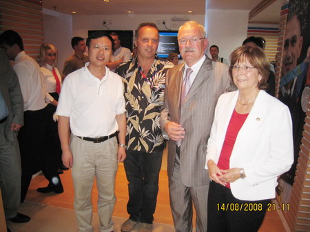 8月14日,公司总裁高彦臣、国际贸易部部长魏学亮应斯洛伐克奥运委员会和大陆玛塔道尔公司邀请,在北京斯洛伐克奥运之家拜会了来华出席奥运会开幕式的斯洛伐克总统伊万加什帕罗维奇及夫人、大陆玛塔道尔公司领导罗西纳先生一行,并参加了“斯洛伐克运动员奥运会庆功晚宴”。