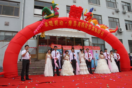 鞭炮齐鸣锣鼓闹,金狮起舞祥云绕。9月20日,青岛银河集团(galaxy)“爱随帆动”集体婚礼隆重举行。在这个收获的季节里,五名年轻员工也收获了各自的爱情,与爱侣喜结连理。公司领导及全体员工共同为他们的爱情作了见证。