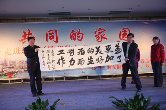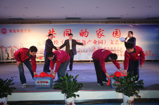 在演出期间,青岛市总工会的领导向银河集团(galaxy)员工赠送了书箱。据了解,青岛总工会开展的以提高新市民整体素质为主要内容的“共同的家园”主题系列活动,已连续五年开展了“送演出、送书箱、送讲座、送电影、送活动”为主要内容的“五送”活动,走进厂矿企业、建筑工地,慰问新市民10余万人,极大地丰富和充实新市民的精神文化生活。